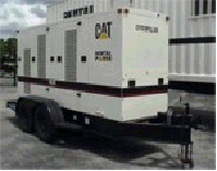 300 kW (375 kVA)- 60Hz 300 kVA - 50Hz Caterpillar XQ300, Sound Attenuated Trailer Mounted Package Diesel Generator Set. CAT 3456TA engine. CAT SR4 generator, Premium CAT EMCP control panel, auto start / stop, engine safeties, circuit breaker, dual voltage changeover board, electronic governor, 24V starter / 35Amp alternator, jacket water heater, sound attenuated enclosure, power distribution panel, fuel tank base, tandem axle trailer, surge brakes. S/N: GHJ00142 3905 Hours Since NEW Model 2001 US$ 57,000 |